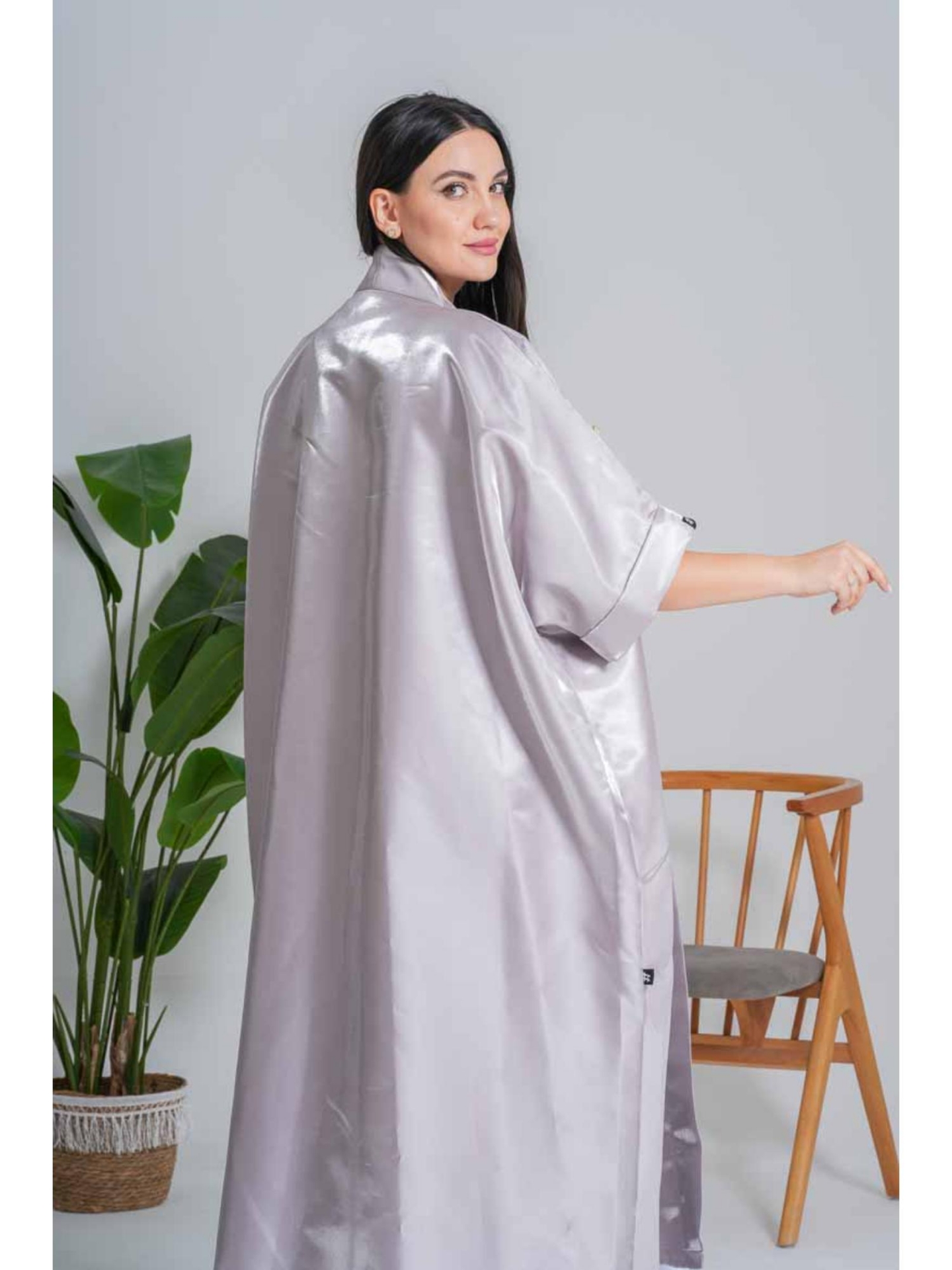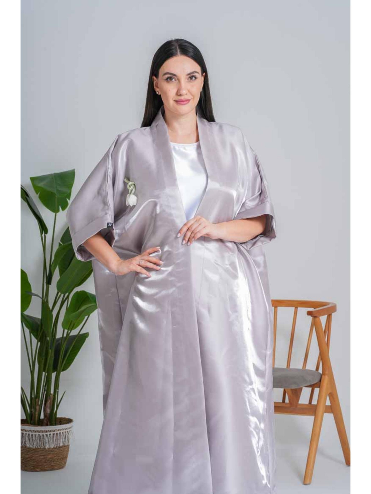 كيمونو الساتان "الفضي البارد" - إطلالة احتفالية متألقة